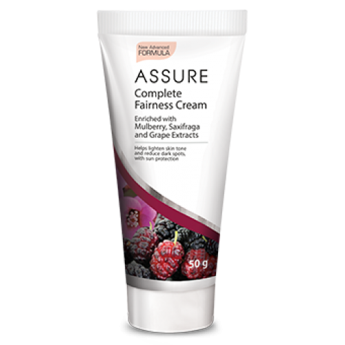 Assure Complete Fairness Cream contains Phyto-white Active, Cucumis Sativus (Cucumber), Morus Alba and Hibiscus Sabdariffa extracts which give a natural skin lightening effect and moisturize the skin as well. Licorice extract protects the skin from UV rays and guards the skin against harmful environmental irritants.